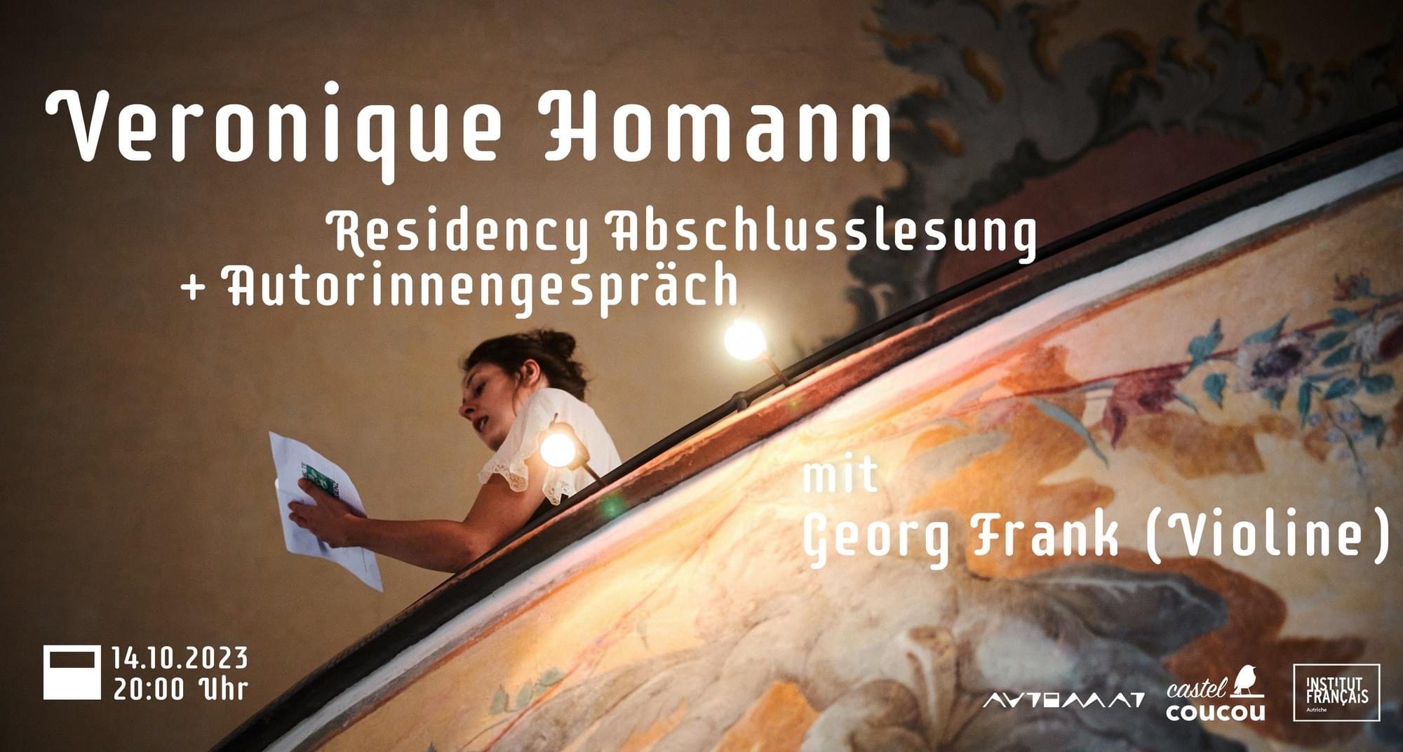 L’espace Automat se réjouit de sa collaboration avec l’espace d’art contemporain Castel Coucou à Sarreguemines (F) et vous invite cordialement à la lecture de l’auteure autrichienne Veronique Homann, qui sera accompagnée par le violoniste Georg Frank de Sarrebruck.